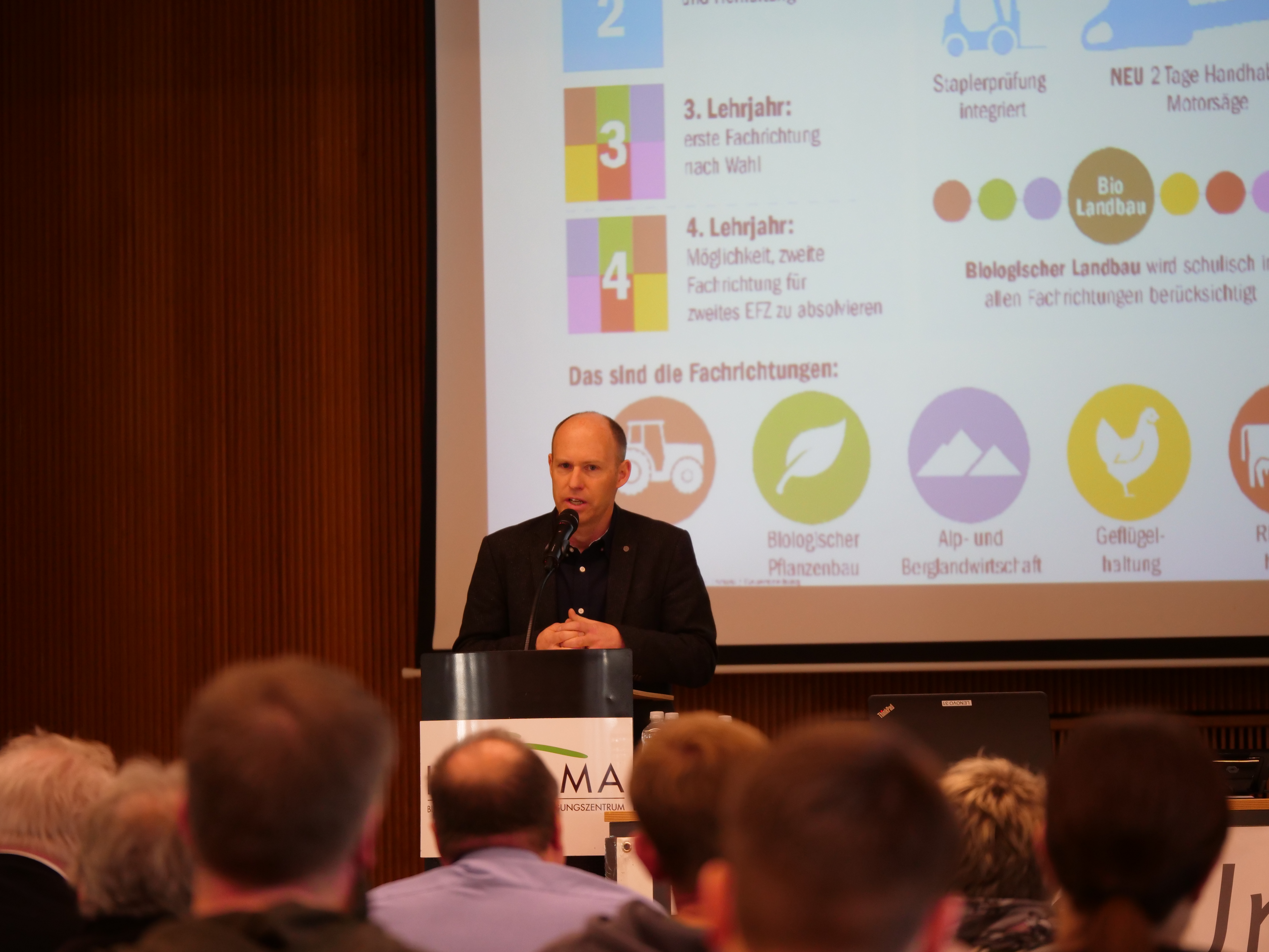 Au centre de formation, de conseil et de congrès INFORAMA du canton de Berne à Zollikofen, le directeur Kaspar Grünig a pu présenter l'exploitation diversifiée et a souligné qu'avec l'obtention du CFC, des fenêtres de formation supplémentaires sont encore nécessaires pour pouvoir gérer une exploitation avec succès.